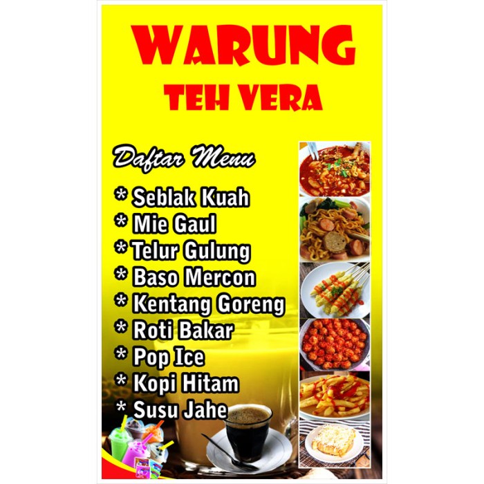 Contoh spanduk makanan dan minuman, contoh banner kedai makan, contoh spanduk promosi makanan, spanduk warung makan sederhana, spanduk . Banner spanduk bahan flexi untuk warung toko kedai konter hp. Contoh spanduk kedai makanan dan minuman, spanduk kedai kopi.cdr, spanduk kedai minuman, spanduk kedai seblak, spanduk warung, . Contoh banner spanduk kedai makanan minuman unik. Apa kedai makan sederhana ini khusus untuk penggemar liverpool aja? Belanja online spanduk jualan makanan terbaik, terlengkap & harga termurah di. Melalui laman informasi yang kami bagikan kali ini, kami akan berikan beberapa contoh desain template . Cetak banner kedai makanan print spanduk usaha jualan minuman print banner . Spanduk makanan lucu bisa menjadi cara promosi yang efektif bagi pemilik warung makan atau restoran. Poin pembahasan 35+ desain spanduk jualan makanan adalah : Berikut contoh spanduk makanan lucu dan unik yang bisa bikin. Contoh banner makanan archives template desain grafis . Contoh banner makanan unik, contoh spanduk makanan dan minuman, contoh banner kedai makan, contoh spanduk makanan ringan, contoh desain .